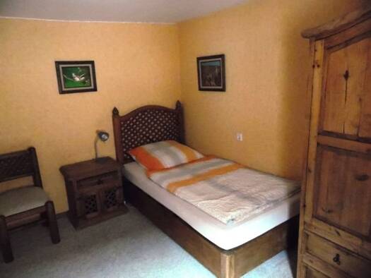 Rustikal möbliertes Zimmer mit separatem Eingang im Haus im 1.OG Bett Schrank, Tisch, Kommoden, Stühle, TV, DSL-Anschluss , Vorraum mit Waschbecken, Zugang zur Dusche und zum WC, mit Tisch mit Stühle...