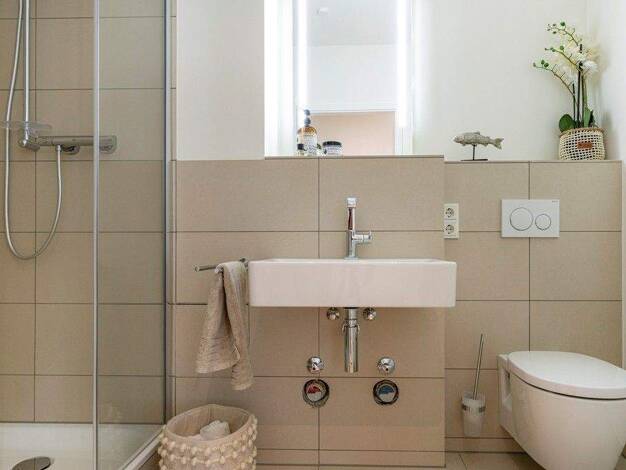 Die Wohnung wurde bereits in der Vergangenheit umfangreich saniert. Das Badezimmer ist modern und freundlich. Die Küche wurde mit einem hellen Fliesenspiegel und neuen Bodenfliesen ausgestattet. Brin...