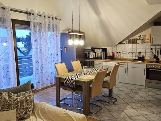 Die gepflegte 3-Zimmer-Wohnung ist in einem Mehrfamilienhaus mit 4 Einheiten im Dachgeschoss. Trotz der Dachschrägen hat man genügend Platz. Anschließend an das große gemütliche Wohnzimmer befindet s...