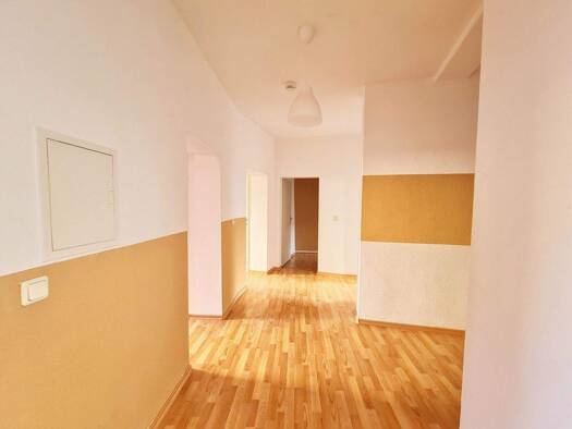 Diese geräumige 3-Raum-Wohnung überzeugt durch einen durchdachten Grundriss und vielseitige Nutzungsmöglichkeiten. Der lange Flur verbindet alle Räume miteinander und schafft eine angenehme Wohnatmos...