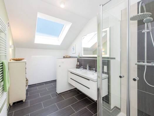 Das Haus wurde 2018 in Holztafelbauweise errichtet und besteht aus Erdgeschoss und ausgebautem Dachgeschoss. Die Wohnfläche beträgt ca. 127 m². Das Grundstück misst 1.067 m². Der offene, großzügige W...