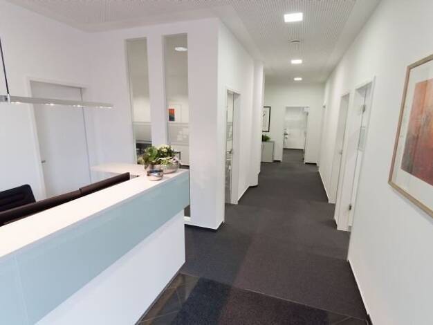 Zur Vermietung steht eine helle und großzügige Büroeinheit im 1. Obergeschoss. Die Fläche umfasst insgesamt 137,91 m². Raumaufteilung - Großzügiger Eingangsbereich/ Empfangsbereich - 5 Büroräume in u...