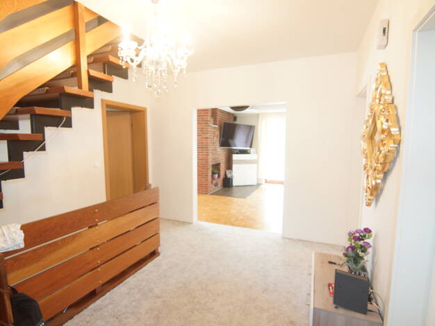 Zu verkaufen ein 167 m² großes Einfamilienhaus mit einer 53 m² großen ELW u. einer 45 m² großen Garage, sowie eine 400 m² große Gewerbehalle. EG: Eingangsflur GWC Schlafzimmer Wohnzimmer mit Kamin Kü...