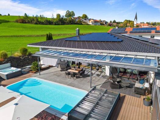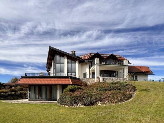 Exklusiv wohnen im Allgäuer Alpenvorland: dieser traumhafte Landsitz auf einem Hügel südlich von Kempten bietet Ihnen modernen Luxus in einer Architektur, die in hervorragender Weise Moderne und Trad...